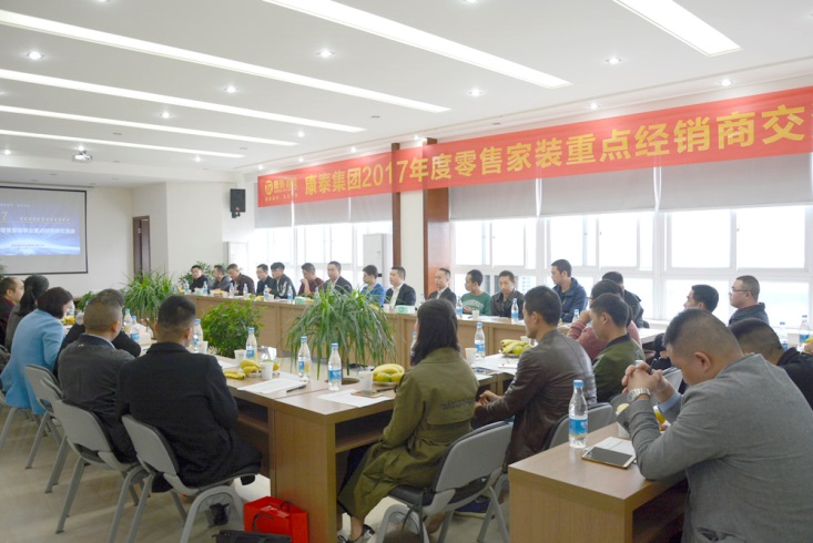 為全面總結(jié)康泰零售家裝事業(yè)運營情況,闡述康泰零售家裝事業(yè)發(fā)展前景、規(guī)劃,堅定客戶合作信心。10月13日下午2時,“康泰集團(tuán)2017年度零售家裝事業(yè)重點經(jīng)銷商交流會”在集團(tuán)總部召開。本次會議既是康泰零售家裝事業(yè)經(jīng)銷商的首次交流、研討會議,也是為制定2018年康泰零售家裝事業(yè)經(jīng)營規(guī)劃,從經(jīng)銷商目標(biāo)、定位、發(fā)展戰(zhàn)略、渠道模式上找準(zhǔn)需求,為下一步合作發(fā)展打下堅實基礎(chǔ)的重要的研討、交流會議。來自西部區(qū)域的康泰零售家裝重點經(jīng)銷商齊聚康泰,共商發(fā)展大計,共謀發(fā)展新篇??堤┘瘓F(tuán)副總裁鄭光鏵,副總裁張文霖,銷售總監(jiān)何朝暉,總裁助理張勇,零售事業(yè)部總經(jīng)理趙謙及零售事業(yè)部銷售團(tuán)隊成員參加了此次會議。會議由銷售辦公室主任王珊主持。